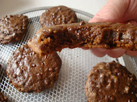 Acabou de sair do fornoOs cookies estão secando, como ainda não tenho o suporte que vende no EUA, comprei na Tijuca no Rio de Janeiro, em uma casa que vende produtos de chocolate, uma rede para doces que serve perfeitamente, só não tem os pés. Para compensar isso coloquei um tabuleiro redondo em baixo para circular o ar.